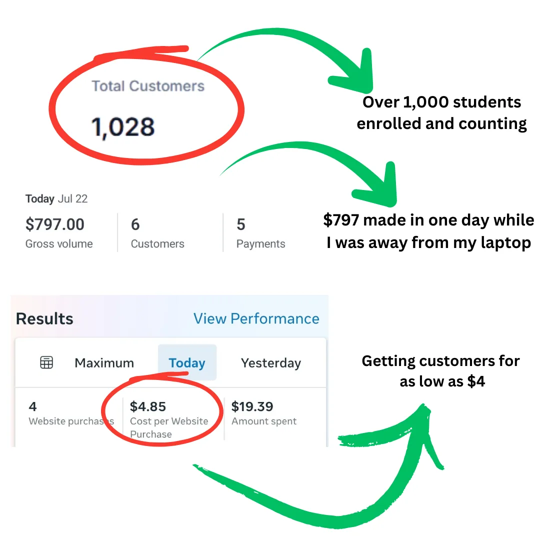 to consistent daily sales, 1,000+ paying students, and a business that grows while I sleep.